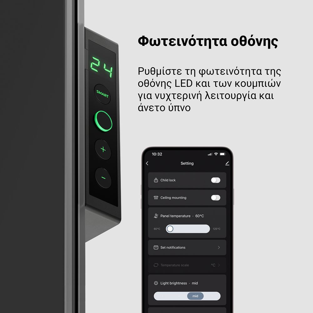 Θερμαντικό Πάνελ AGH0004S από την εταιρεία Aeno με αισθητικό και μινιμαλιστικό σχεδιασμό, ισχύ 700W+, με καινοτόμο υπέρυθρη θέρμανση, οθόνη LED, έλεγχο μέσω κουμπιών ή της εφαρμογής AENO App και με μέγιστη ασφάλεια για παιδιά και κατοικίδια καθώς προσφέρει προστασία από τυχαία ενεργοποίηση από παιδί μέσω του κλειδώματος γονικός έλεγχος στην εφαρμογή.