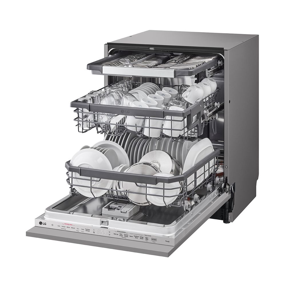 Πλυντήριο πιάτων LG με ατμό και QuadWash για αποτελεσματική πλύση και λιγότερες κηλίδες νερού. Διαθέτει τεχνολογία EasyRack Plus που φροντίζει την ιδανική τοποθέτηση των σερβίτσιων και ο κινητήρας Inverter Direct Drive προσφέρει μεγάλη αποδοτικότητα. Έλεγξε το απομακρυσμένα, μέσω της εφαρμογής SmartThinQ.