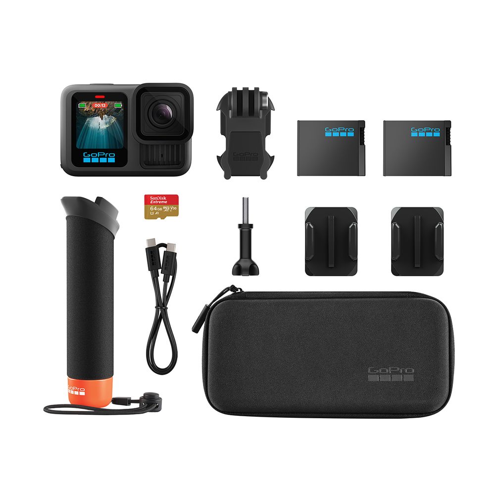 Αυτό το πακέτο περιλαμβάνει όλα όσα χρειάζεσαι για εντυπωσιακά πλάνα. Περιέχει την HERO13 Black, το The Handler (Floating Hand Grip), επιπλέον μπαταρία Enduro, κυρτή αυτοκόλλητη βάση, κάρτα SD 64GB και θήκη μεταφοράς. Με κορυφαίο βίντεο 5.3K60 και θρυλική ανθεκτικότητα, προσφέρει ευελιξία τοποθέτησης και παρατείνει το χρόνο εγγραφής με την μπαταρία Enduro. Με σταθεροποίηση HyperSmooth 6.0, αυτόματα βίντεο με highlights και αποστολή στο cloud, αποτελεί ιδανική επιλογή για δημιουργούς.