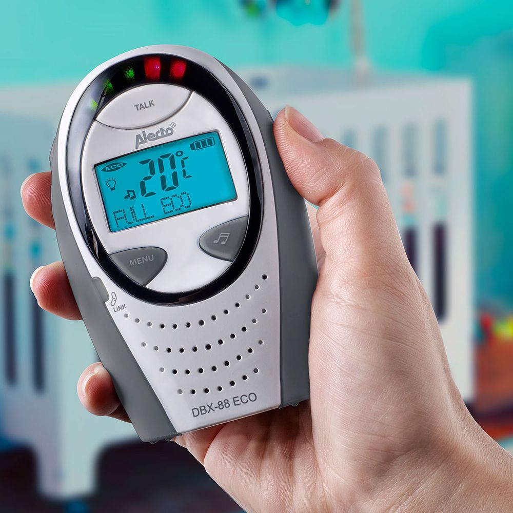 Η ψηφιακή συσκευή παρακολούθησης μωρού DBX-88 της Alectο με οθόνες LCD και στις 2 μονάδες παρέχει 100% ασφαλή σύνδεση χωρίς παρεμβολές και σου επιτρέπει να προσέχεις το μωρό σου από όποιο σημείο του σπιτιού και να βρίσκεσαι. Διαθέτει φωτεινή ένδειξη ήχου και θερμοκρασίας δωματίου, καθώς και δυνατότητα νανουρίσματος, απομακρυσμένου ελέγχου του φωτός νυχτός, αλλά και ειδοποιήσεις εκτός εμβέλειας και χαμηλής μπαταρίας. Τέλος, η αναμονή λειτουργίας της συσκευής φτάνει τις 166 ώρες.