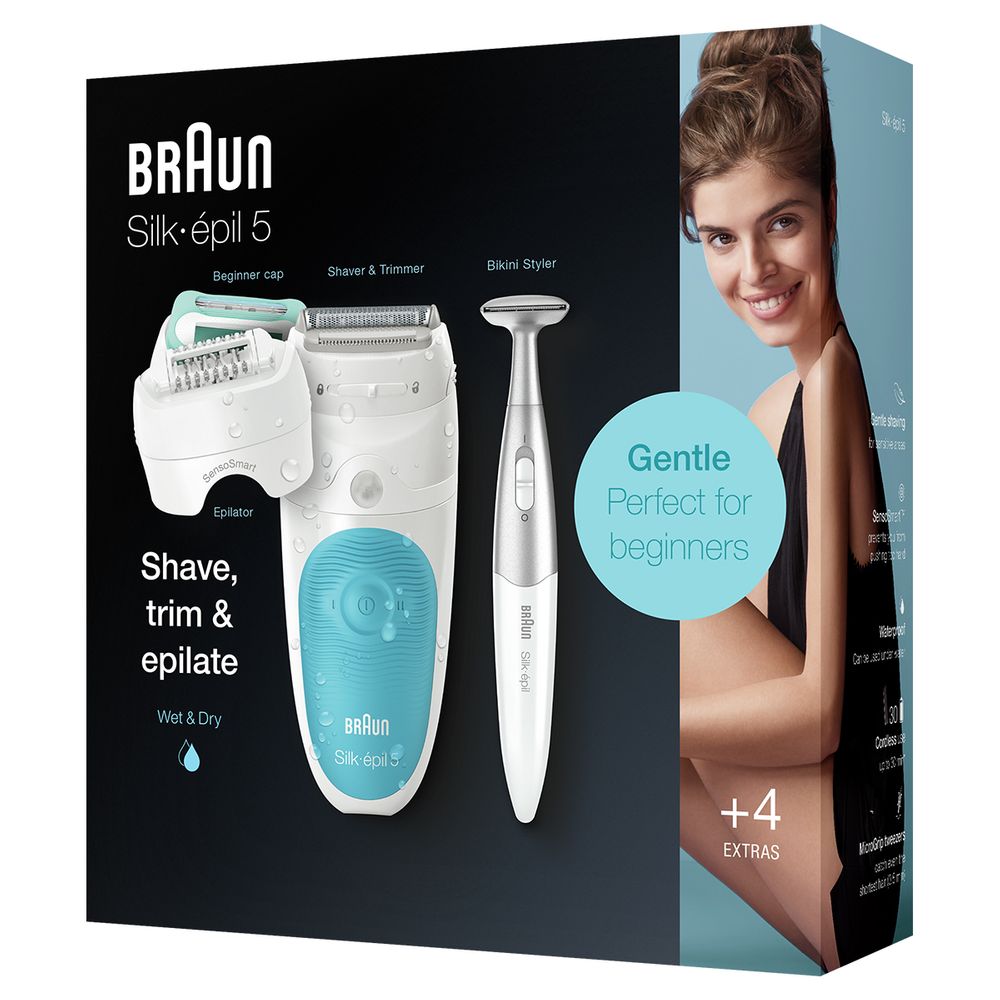 Έξτρα απαλή αποτρίχωση για εβδομάδες με τεχνολογία SensoSmart. Η αποτριχωτική μηχανή Silk-epil 5, είναι ιδανική για αρχάριες.